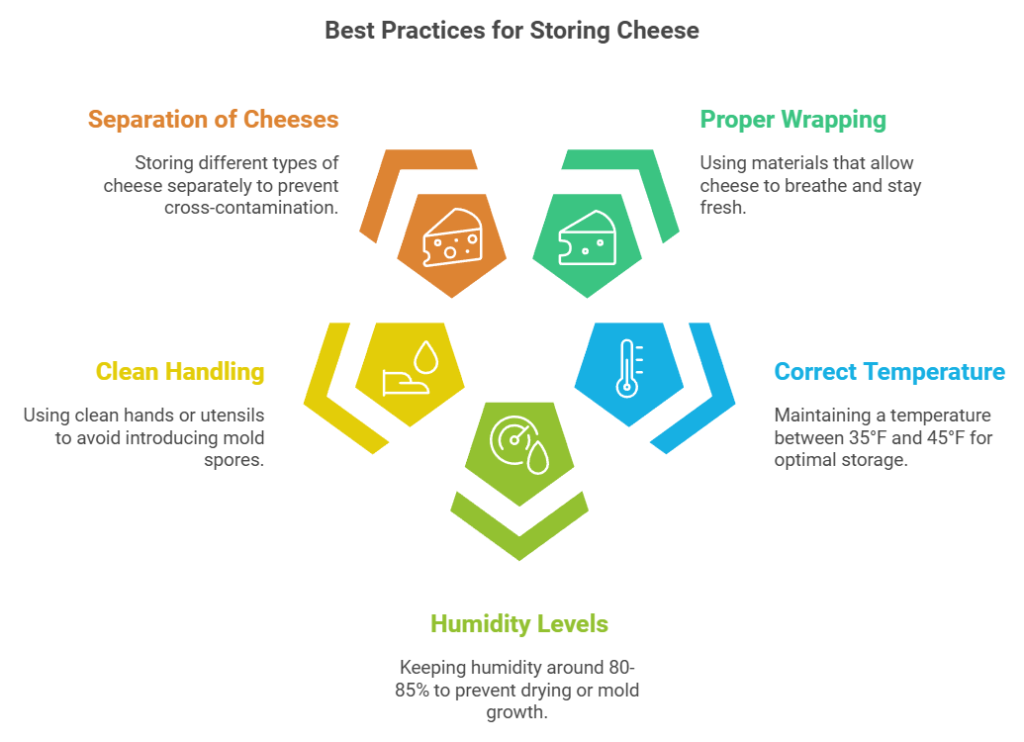 - Store cheese at the correct temperature (usually between 35°F and 45°F)