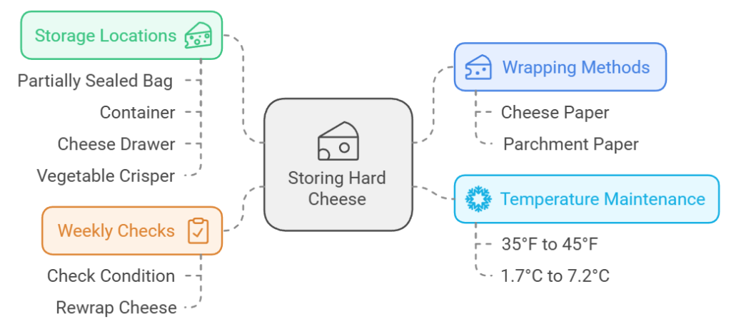 - For very long storage, consider vacuum sealing and freezing hard cheeses
