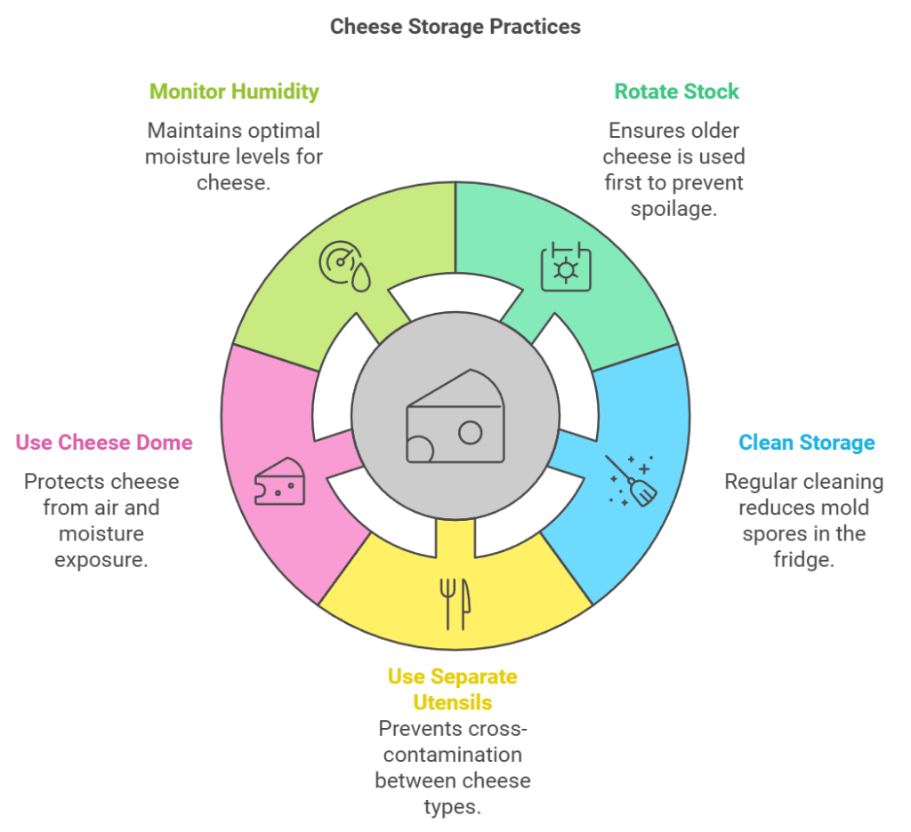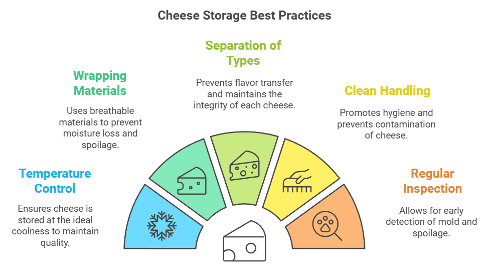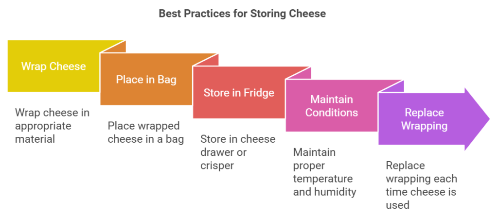 Proper cheese storage involves several key practices: